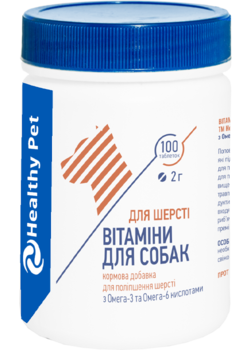 До складу вітаміно-мінерального комплексу ТМ Healthy Pet "Для шерсті" входять поліненасичені жирні кислоти, рослинні олії та риб`ячий жир, що позитивно впливають на стан шерсті та шкіри тварин. Також дані вітаміни застосовують для профілактики вітамінно-мінеральної недостатності. Рекомендовано для собак довгошерстих порід, а також у випадках посиленого втрачання шерсті, свербінні, лупи, екземі. Оптимізує пігментацію.
